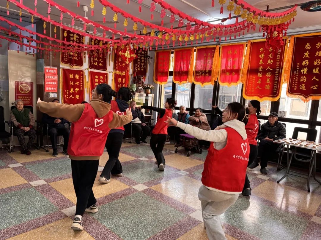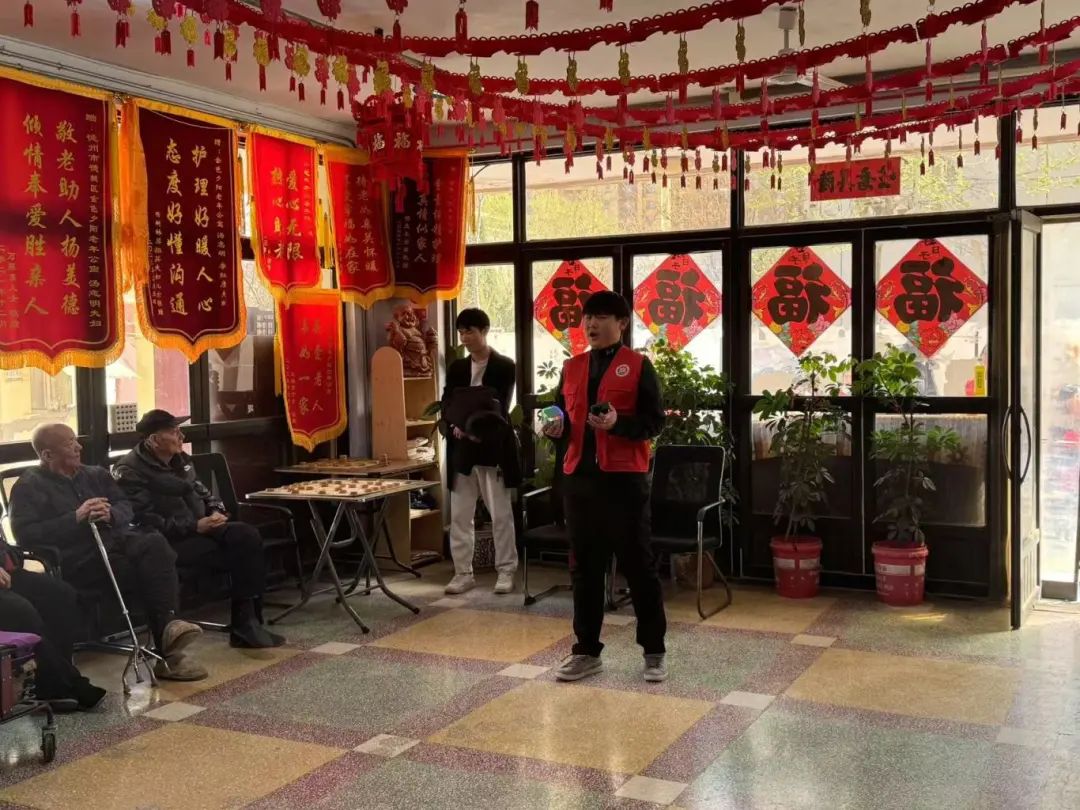 活动中,志愿者们精心准备了丰富多彩的节目。声乐专业的同学为老人们演唱了《强军战歌》《世界赠予我的》《明天会更好》等经典歌曲,悠扬的旋律唤起了老人们的共鸣,不少老人跟着轻声哼唱,现场气氛温馨感人。音乐不仅拉近了志愿者与老人之间的距离,更传递了浓浓的关爱之情。