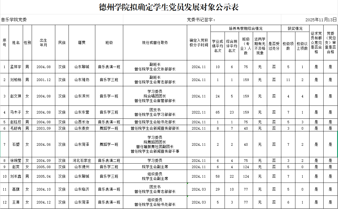 经党组织培养考察,征求党员、群众和培养联系人意见,支委会讨论研究、党委审查,拟确定孟祥宇等13人为党员发展对象。为增强发展党员工作的透明度,接受党内外群众的监督,确保发展党员的质量,根据上级文件精神和《中共伟德国际1946委员会发展党员工作实施细则》的要求,现将拟确定发展对象的基本情况公示如下(名单附后):