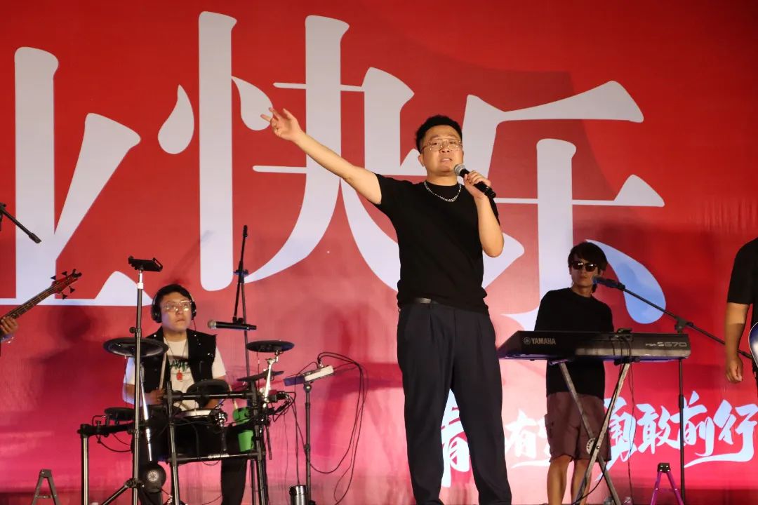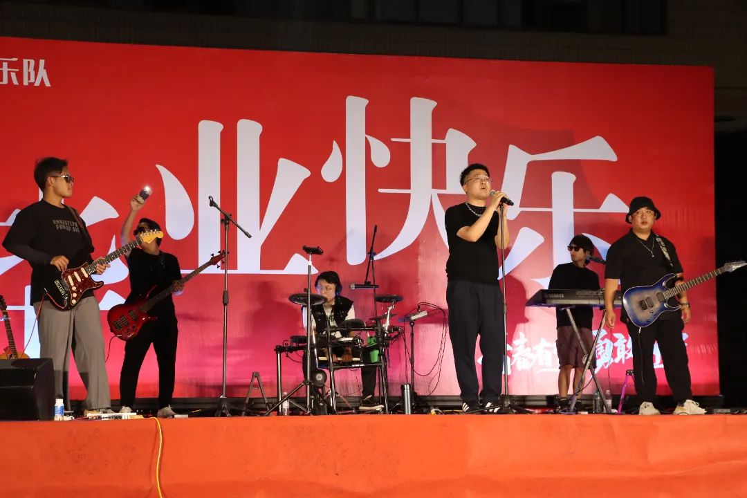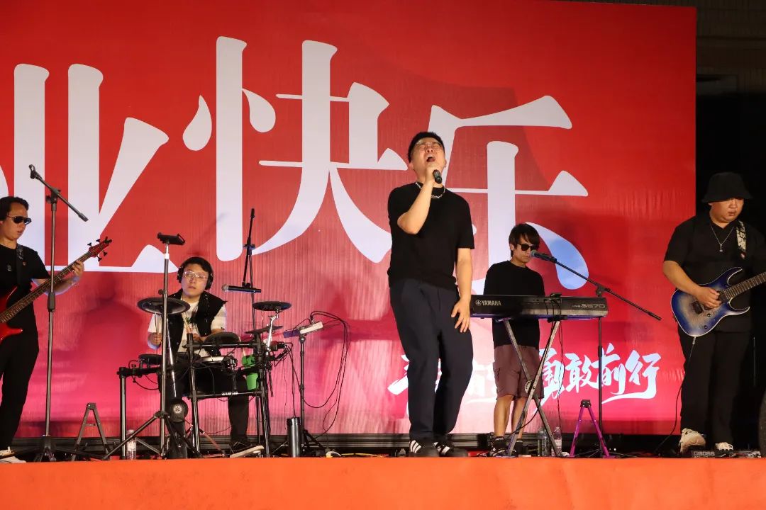 活动现场吸引了数千名学生积极参与,现场气氛热烈。双子星乐队演唱开场歌曲《冲开一切》成功拉开本次毕业歌会的帷幕,随后,主持人开启了中场预热环节,小礼品的赠送成功把全场的气氛推向高潮!《我是愤怒》《不再犹豫》《海阔天空》等一首首激情澎湃的音乐依次上演。