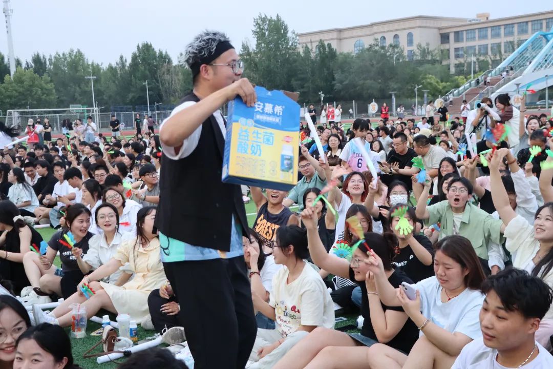 随后,主持人采用现场猜歌送小礼物的方式去点燃大家的激情,大家热情高涨,很多同学积极参与,带来了不少充满热情的演唱,不仅如此,在下半场的音乐会过程中,“双子星”乐队还带来了《鲜花》、原创歌曲《花火》。台上演唱奔放热烈、台下欢呼此起彼伏,歌会现场热情高涨、气氛热烈。随后,主持人随机邀请现场的同学上台演唱,大家热情满满,带来了令人眼前一亮的歌曲。