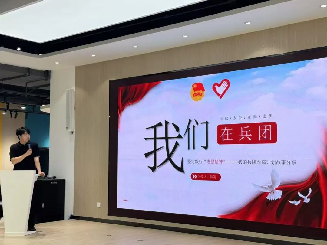 韩笑以“在新疆的青春答卷”为主题,通过视频、图片等形式生动展现了石河子市的风土人情与志愿服务日常。他结合志愿服务经历,讲述了从适应边疆环境到参与基层服务的蜕变历程,并围绕岗位选择、服务期规划、职业发展等学生关切的问题展开经验分享。“在西部的一年,我深刻体会到‘被需要’的幸福。这段经历不仅锤炼了能力,更让我领悟到青春的价值在于奉献与担当。”他动情地说道。