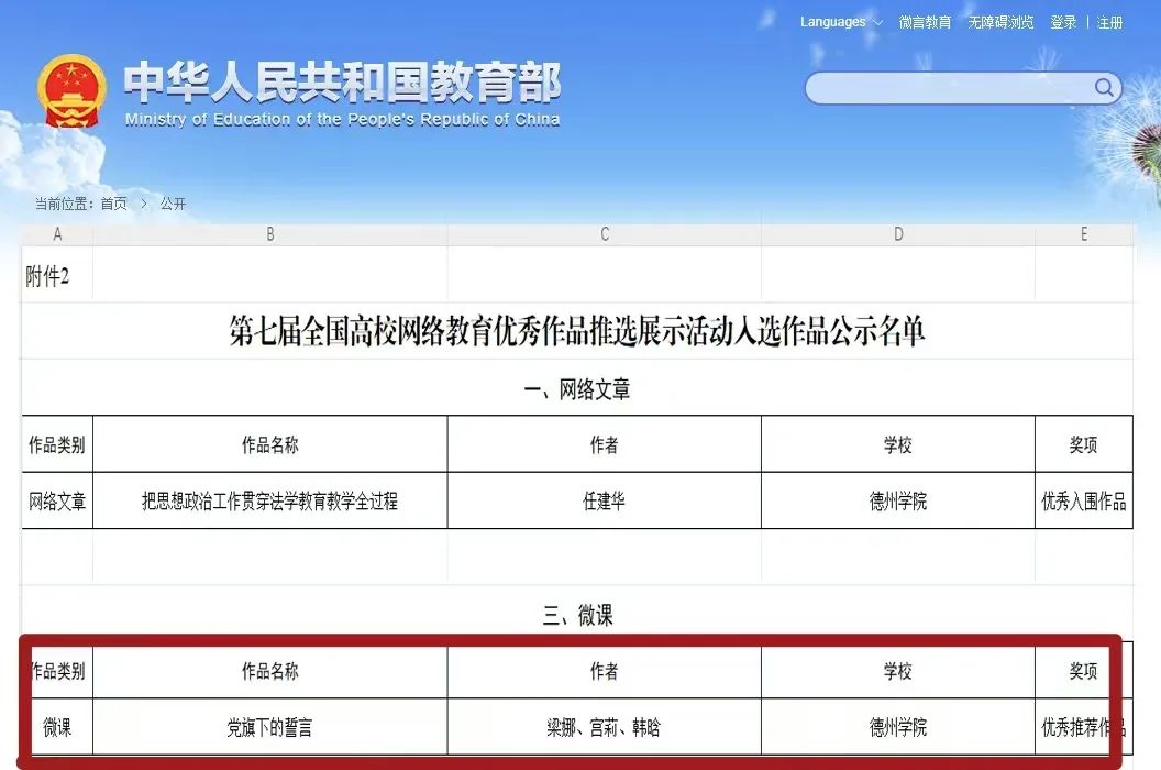 由教育部思想政治工作司、中央网信办网络社会工作局联合举办的第七届“全国高校网络教育优秀作品推选展示活动”遴选结果公示,伟德国际victor1946微课《党旗下的誓言》被评为优秀推荐作品。