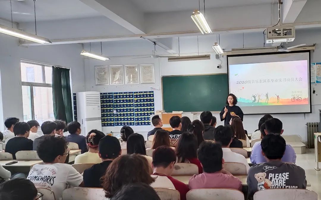 音乐表演系实践教研室主任李琛向同学们讲述了毕业实习的内容与要求,以及在调研、采风、活动策划、演出、讲座等实习活动中的注意事项,鼓励大家以饱满的精神状态去认识社会、服务社会、提升专业素养、夯实专业能力、有效完成实习任务。