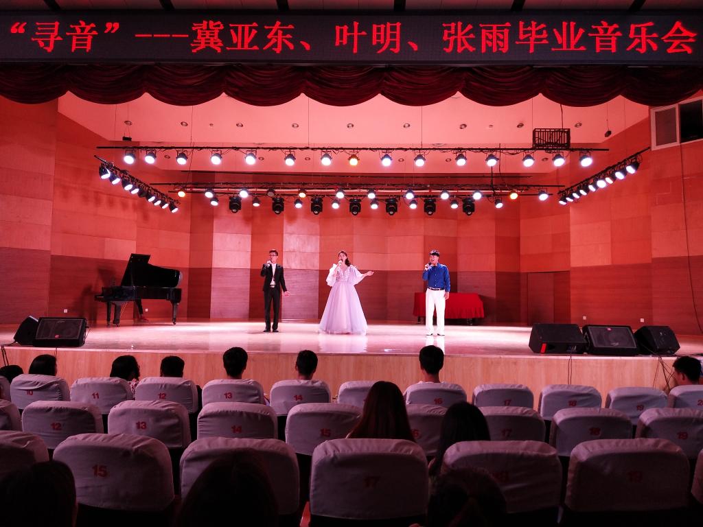 5月23日晚,伟德国际victor1946“寻音”――冀亚东、叶明、张雨毕业音乐会在南校音乐厅举行。伟德国际victor1946声乐教研室教师及全体学生到场观看。