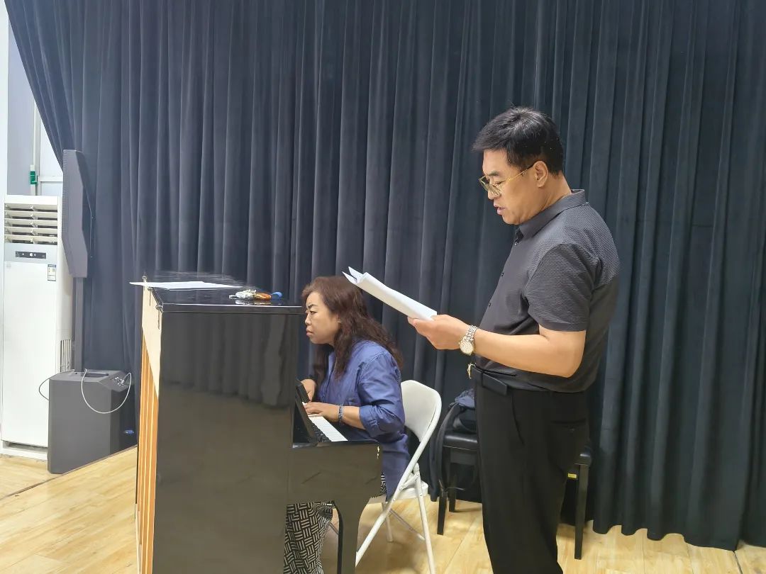 在现场,王硌教授对各位老师进行“一对一”的悉心指导和针对性点评,指出在演唱中存在的问题并给予指导性建议。王教授对歌剧排练具有丰富的经验,从作词、谱曲与歌曲伴奏方面对《西征组歌》提出了专业性整改方案,并结合历史背景与老师们进行了深度交流,让歌曲更加细致化,也通过现场示范等方式使老师们更加深刻地认识到声乐演唱的精髓,对于进一步提高教学水平和音乐表现力有了更深层次的理解。