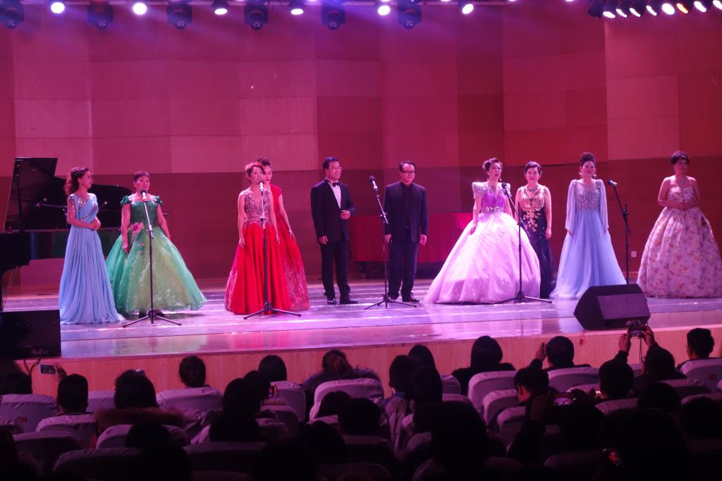 本场音乐会由“古曲”、“创作歌曲”、“外国咏叹调及意大利歌曲”三部分组成。音乐会随着杜乡老师演唱的《关雎》拉开了序幕,其高超的演唱水平使同学们深刻的感受到了古曲的魅力;接下来,由杨光伟、梁娜、李静等老师演唱的一些脍炙人口的“创作歌曲”——《芦花》、《拾彩贝》、《古老的歌》、《军营飞来一只百灵》等歌曲将全场气氛推至高潮,观众掌声不断;最后,由吴丽老师、梁娜老师、李琛老师演唱的外国咏叹调及意大利歌曲《晴朗的一天》、《每逢节日到来》、《维利亚之歌》使大家深刻的体会到了外国歌曲的魅力,也开阔了视野,为本次音乐会画上了圆满的句号。