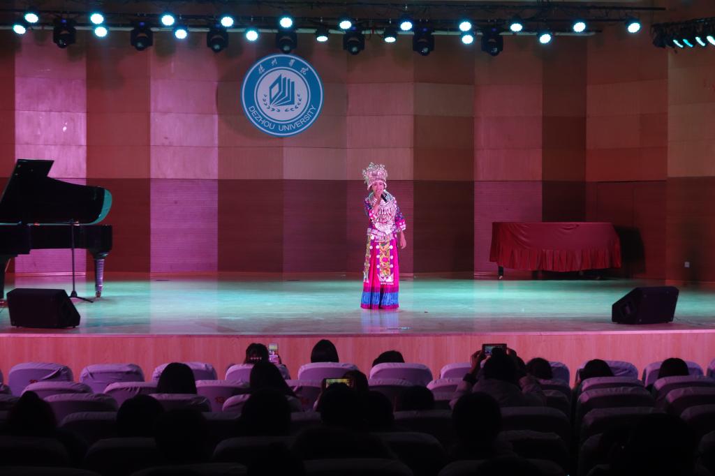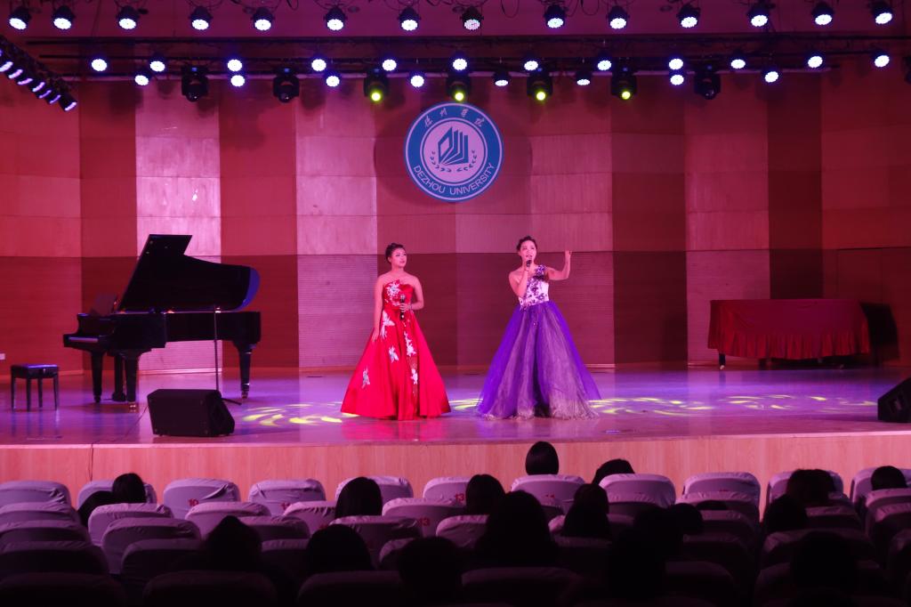 晚会开始,一首歌曲《我为祖国献石油》的演唱为本次晚会拉开帷幕,赢得了观众的阵阵掌声。随后,一曲《我像雪花天上来》声音婉转动听,歌曲不一样的色彩获得了同学们的一致好评。之后,伴随着音乐的响起,一曲《北大荒人的歌》,高昂动听的歌声烘托了整场音乐会的气氛,台下掌声不断。接下来的男女声合唱《国家》,浓浓的爱国情意随着歌声流露,把音乐会推向高潮。最后,一曲《今天是你的生日我的中国》,献上了对祖国的热爱与祝福,为此次音乐会划上了圆满的句号。