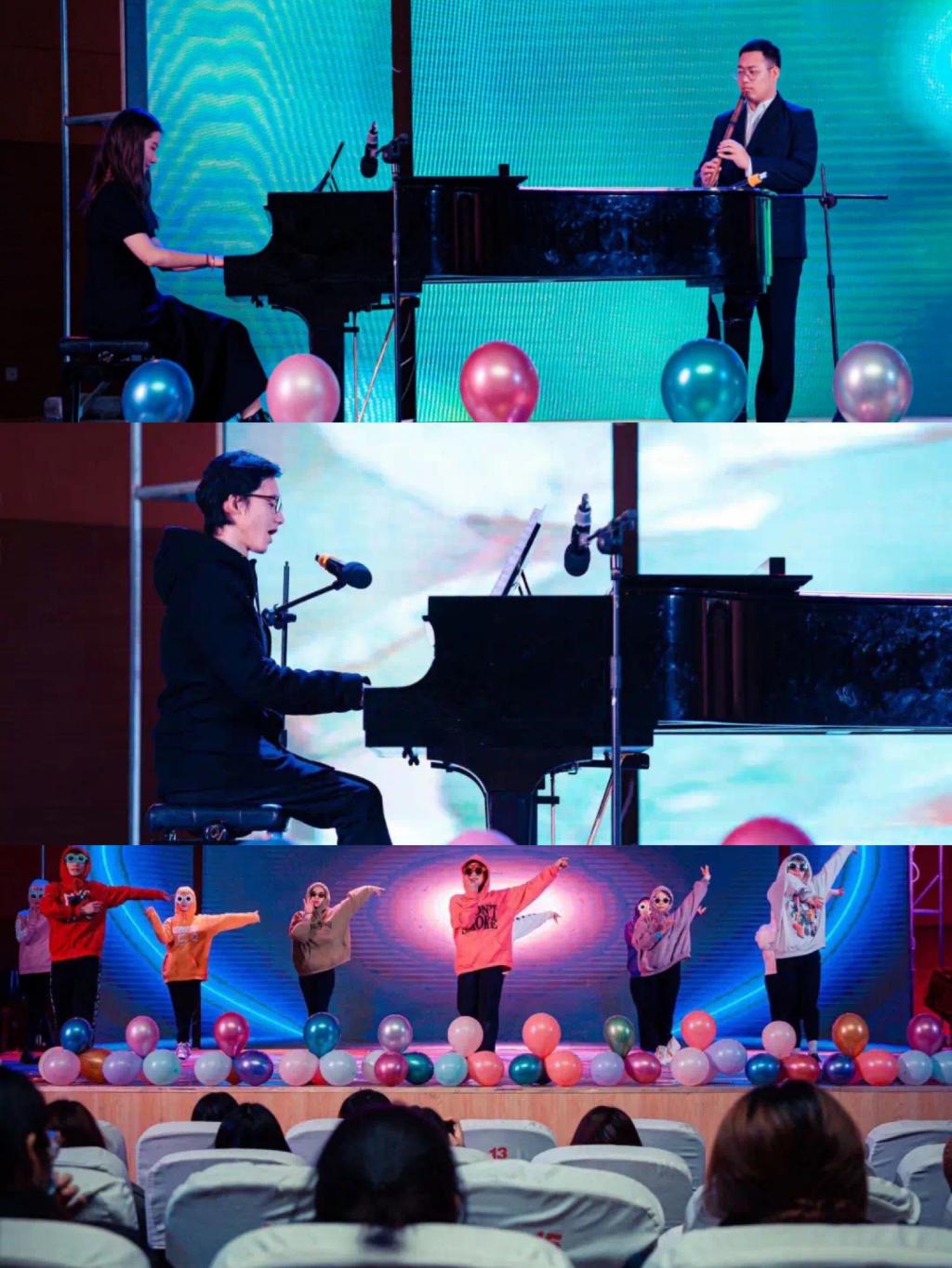 本次音乐会由一首《空白格》拉开了帷幕。《萨帝梨形曲序奏》是萨蒂完成的一部四手联弹钢琴作品,曲风简朴,幽默,极具个人风格。青春是生命中最美妙的一段时间,接下来的舞蹈《我们的时光》让观众体会浪漫悠扬的感情。《贝加尔湖畔》是俄罗斯风格的民谣曲风,用温暖的声音,将聆听者带入贝加尔湖畔的美景,仿佛置身于其中的浪漫故事。接下来的《望乡词》歌曲表现了台湾将士望着大陆故乡眼淌泪,心痛哭的悲伤心境。民乐合奏《大鱼》旋律悠远绵长,歌词画面感丰富又不乏动人细节,如诗一般直戳人心。《歌曲串烧》唱出了青春的激情活力。萨克斯合奏《mojito》充满浪漫感情的歌曲,由爵士风格的萨克斯演奏出来,给我们带来了不一样的听觉盛宴。接下来一段beat box燃爆全场。胶州秧歌是山东省胶州市地区的传统舞蹈,其舞蹈、音乐曲牌和情节剧在中国秧歌群体中独树一帜。《海棠啊让他去吧》选自经典歌剧《沂蒙山》,生动的演唱让观众感受到国家存亡与个人命运的纠缠中牺牲小我,军民一心,团结抗战的故事。《舞蹈串烧》鼓动全场的气氛,舞出自信,舞出理想。歌曲《玫瑰三愿》带着一种凄凉的感情色彩,反映了善良弱小者的愿望。四手联弹《绿野仙踪》渲染温馨美好的氛围。最后,由2018级全体音乐演唱的《后来》,表达了时光荏苒,岁月如梭。转眼间自己已从当年年少轻狂的天真模样,变成如今成熟稳重的职场游郎。想起青春,曾无畏无惧,无所谓失败。