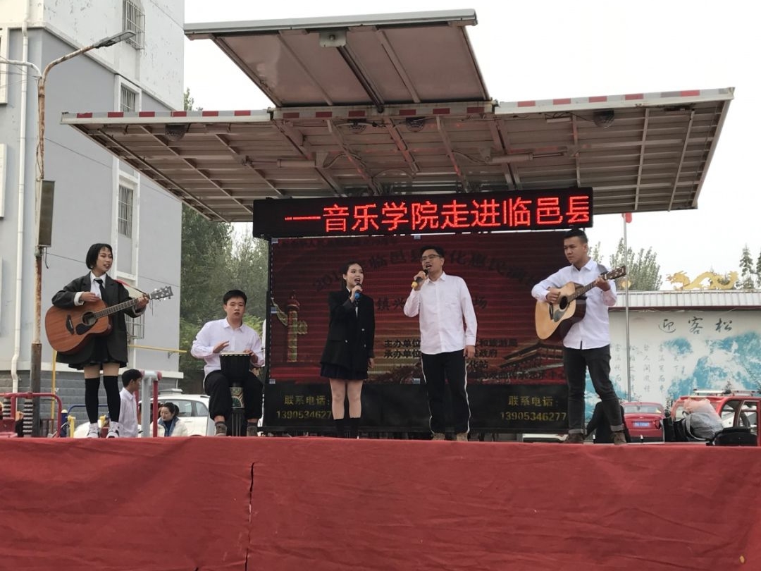 11月6日,伟德国际victor19462016级音乐表演专业毕业生来到临邑县兴隆镇,将丰富多彩的文艺演出送到村民身边,以实际行动落实伟德国际victor1946服务地方文化建设。