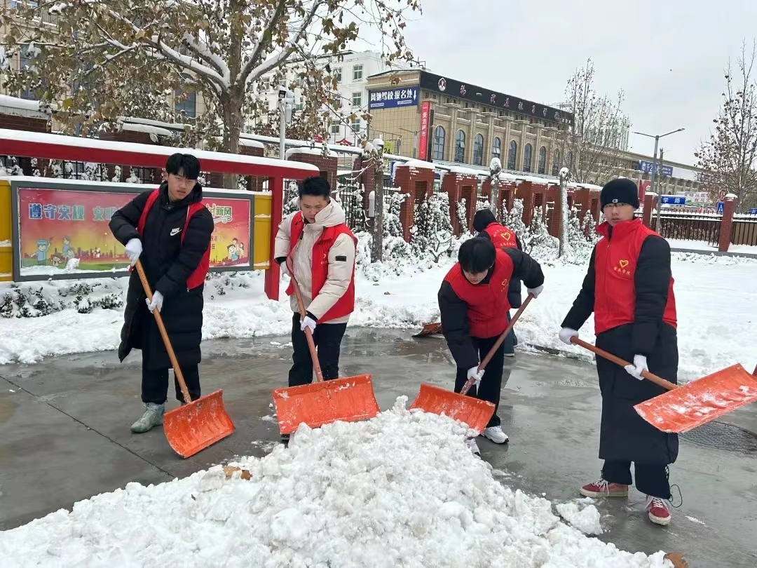 12月14日,德州市普降瑞雪,路面积雪,严寒冰冻。为保障校园道路畅通和孩子们出行安全,12月15日,伟德国际victor1946“信仰之舞”、“音你而舞”志愿服务队全体男生赴伟德国际1946附属小学开展扫雪除冰活动。