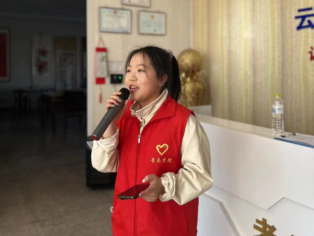 活动中,志愿者纷纷登台展现才艺。竹笛独奏《映山红》柔美细腻,悦耳动听;女声独唱《父亲写的散文诗》,情真意切,感人至深,高亢恢宏的旋律将现场气氛推向高潮;小合唱等节目精彩纷呈,赢得在场老人们的阵阵掌声。表演在男声独唱《武家坡》的歌声中结束。表演过程中,志愿者和老人们积极互动,现场气氛热烈,老人们阵阵的掌声和幸福的笑容使在场的志愿者倍感满足。