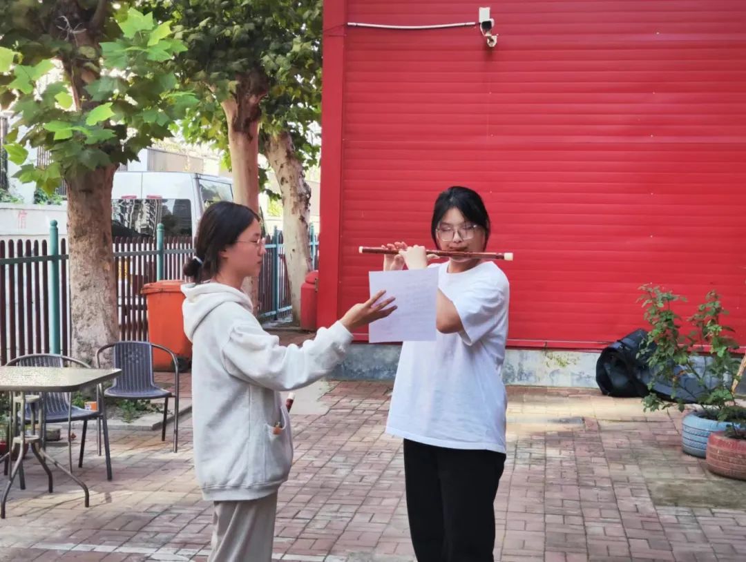 演出节目单多样,开场节目是一段优美的舞蹈《意秋》,随后是竹笛合奏《青花瓷》,笛声悠扬,赢得了现场观众的热烈掌声。在演出的音乐节目中,特别值得一提的是古筝独奏《山丹丹花开红艳艳》,古筝的音色清丽悠扬,将这首经典歌曲演绎得别具一格,深深打动了在场观众的心。接下来的歌曲表演,《向云端》、《后来》、《抬头仰望夜黑的天》和《敢问路在何方》,每一首都由学院的学生倾情演绎,展现了他们的音乐才华。