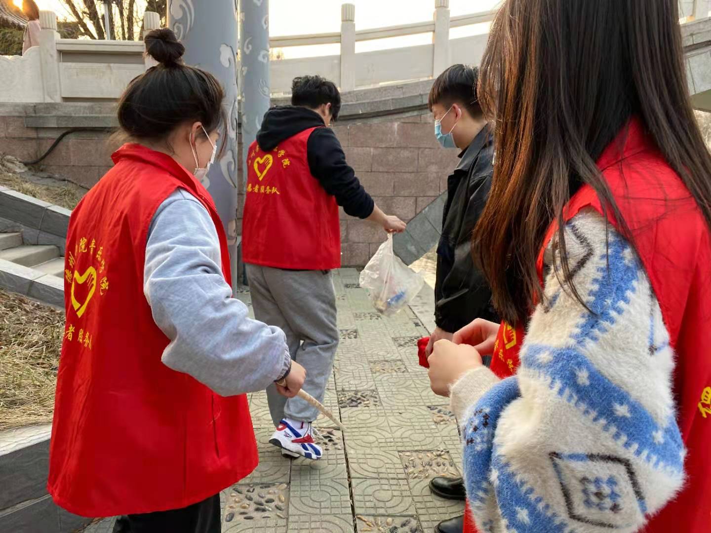 活动中,志愿者们穿着红色马甲,携带垃圾袋、火钳等工具,在校园湖泊周边一路捡拾烟头、废弃物等垃圾,并向周边同学宣传爱惜水源,不乱扔垃圾,爱护自然生态的环保理念,积极引导同学们自觉参与到保护生态环境中来。经过一个多小时的努力,共清理六袋垃圾。
