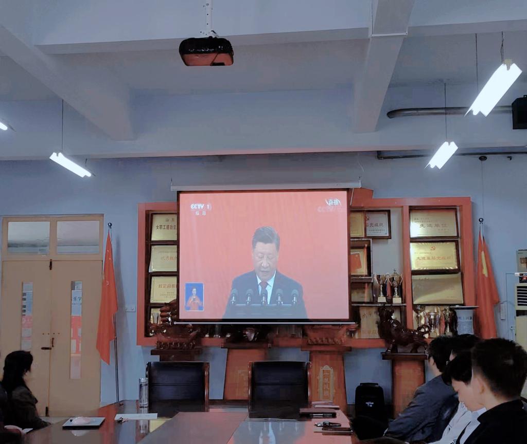 奋进新征程,10月16日上午10时,伟德国际victor1946组织全体师生党员在0147党员活动室集体观看党的二十大开幕会。