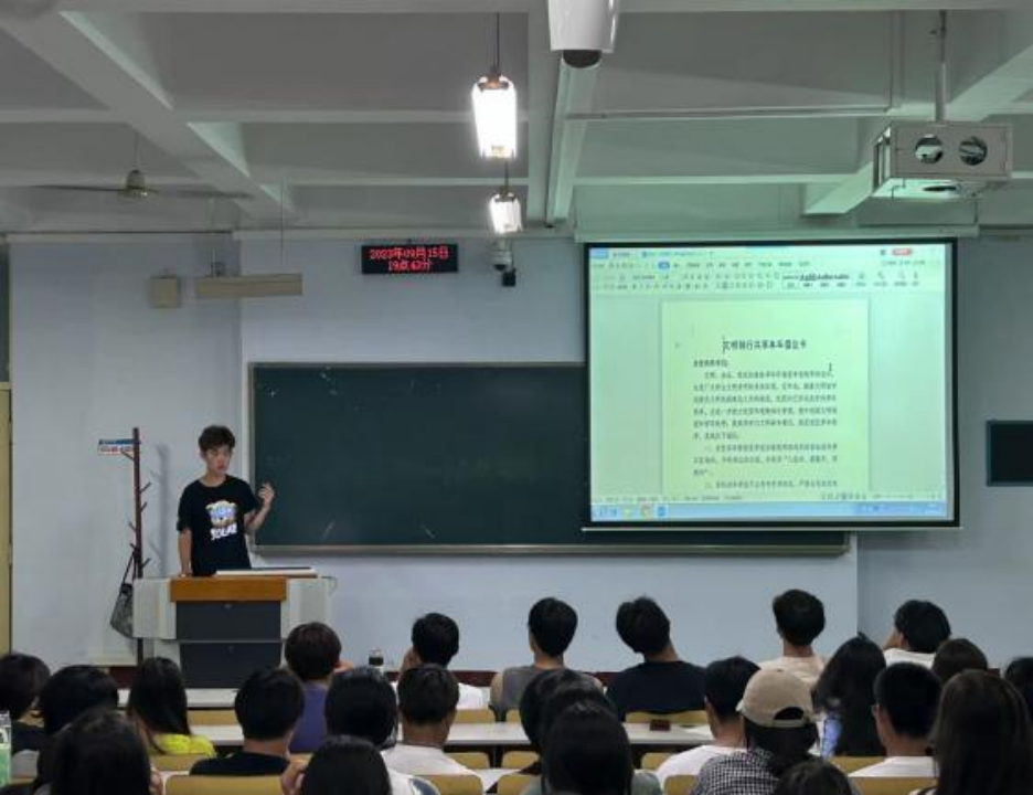 为进一步提升大学生思想道德水平和文明素养,引导学生自觉正言行、律举止、修内涵,形成大学生文明新风尚,9月15日,伟德国际victor1946在5号楼201、202教室开展“提升文明素养,争做文明标兵”主题班会。