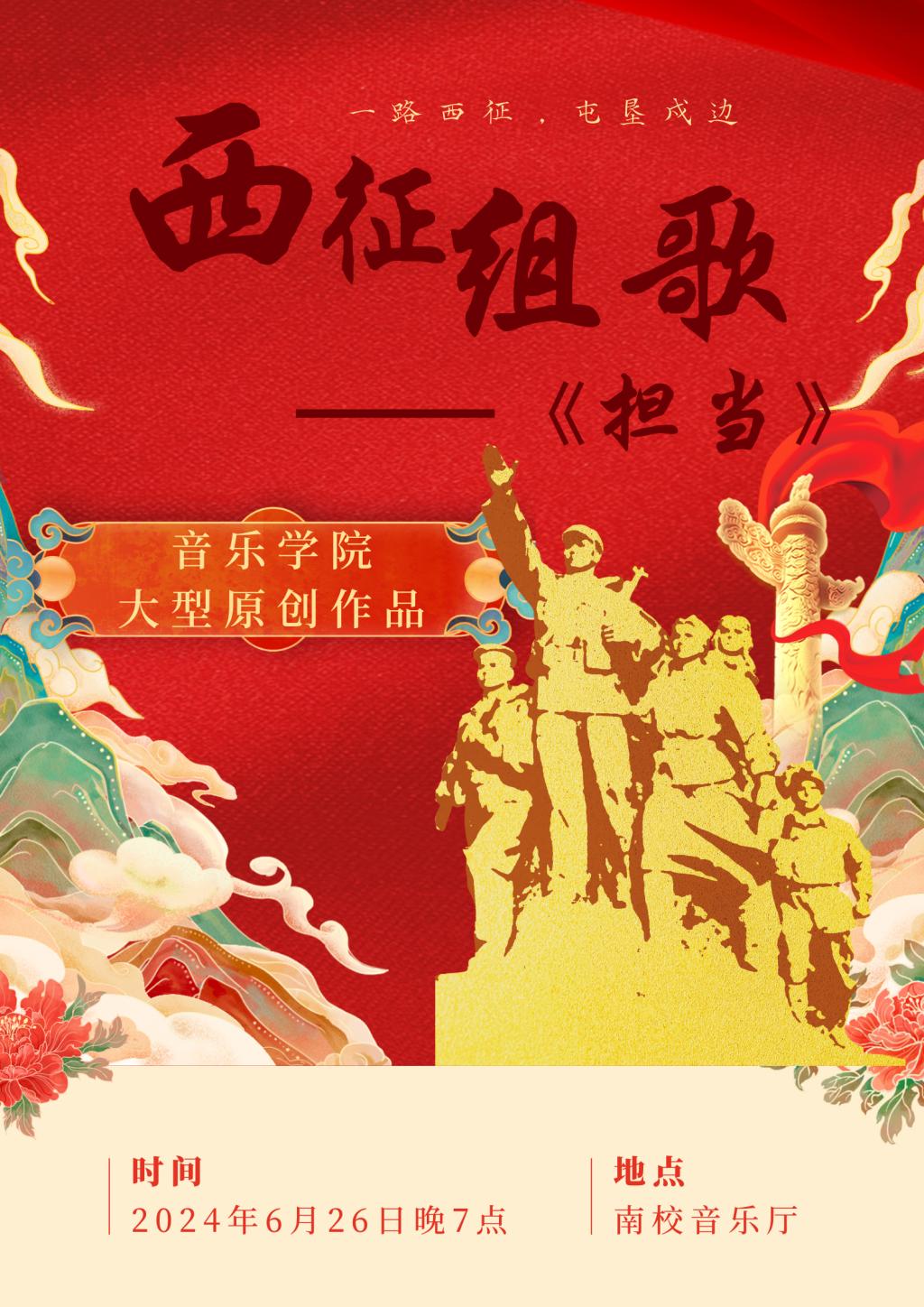 伟德国际victor1946大型原创作品西征组歌《担当》由张从立作词,校友李士兴谱曲,伟德国际victor1946全体声乐教师及优秀学生参演。