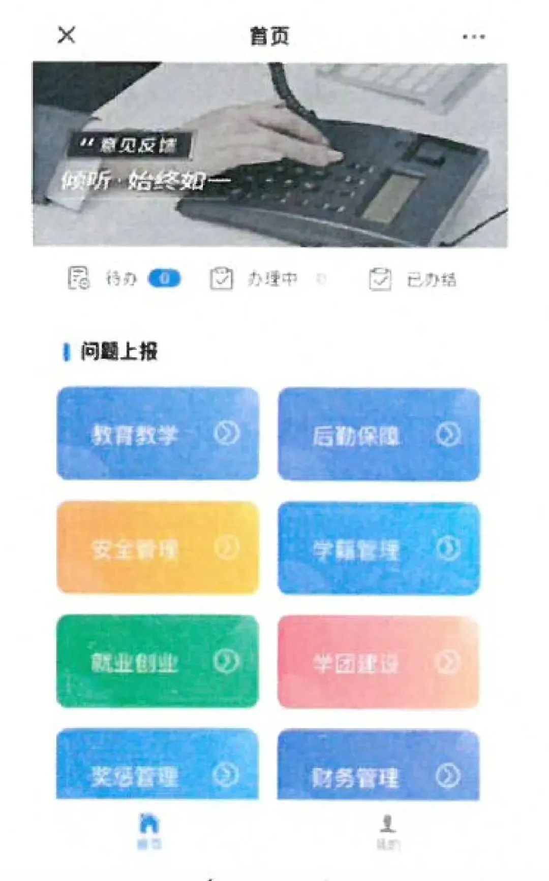 平台集中受理师生提出的各类咨询、求助、建议、投诉、举报等诉求: