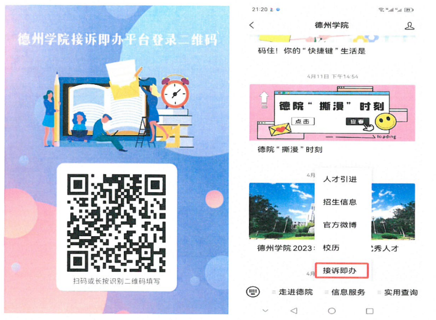 1、微信搜索关注【伟德国际1946】公众号,找到【信息服务】-【接诉即办】菜单(也可通过学校官网首页“伟德国际1946接诉即办平台”链接进入,或者微信扫“伟德国际1946接诉即办平台登录二维码”进入)。