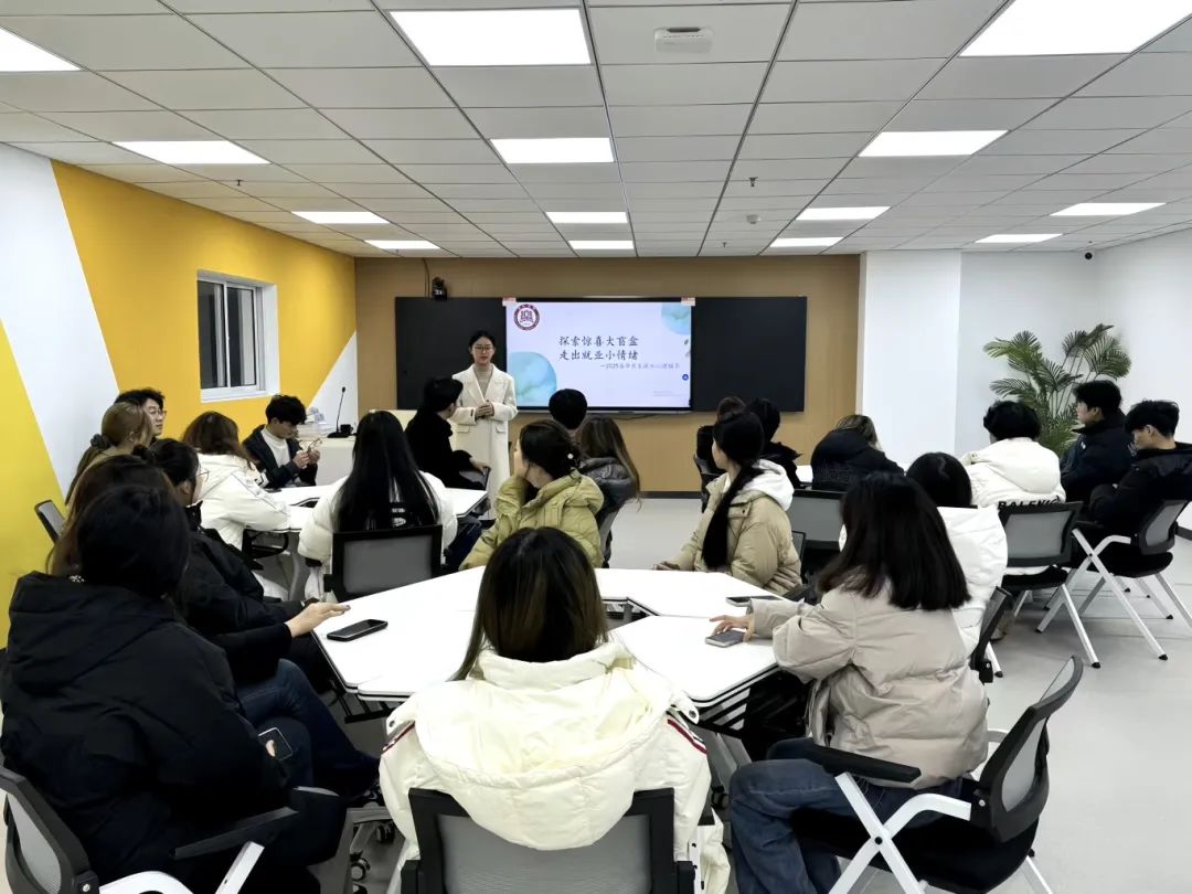 辅导员张艳蕊以盲盒为例,深入剖析了就业历程中的常见负面情绪,如自我怀疑、对未知的恐惧等,并指出行动是增加对未来掌控感和确定感的重要手段,并且分享了几个自我调适的方法,如:调整就业认知、建立积极心态、增强自身能力和寻求外边支援,帮助毕业生在面临职场挑战时能保持积极乐观的心态。