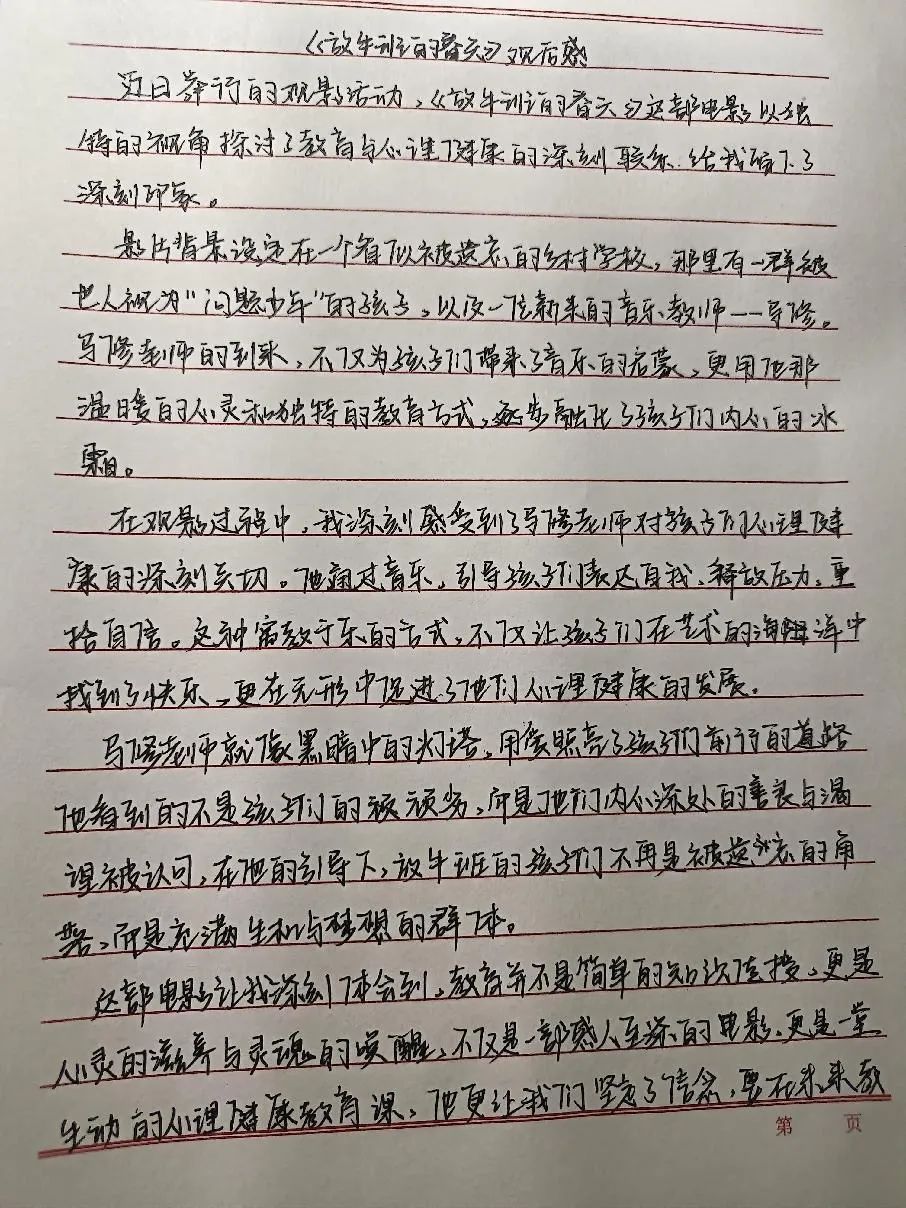 此次心理观影活动结束后,同学们感触良多。不仅为同学们提供了一次放松身心的机会,更使同学们深刻思考了蕴藏在电影背后的“爱”与“教育”的深刻内涵。