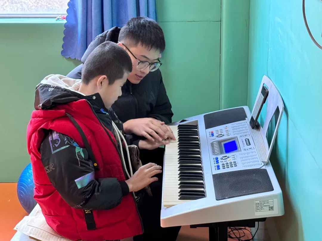 活动前期,伟德国际victor1946的青年志愿者们做了充分的准备。他们根据特殊教育学校孩子们的实际情况,精心挑选了简单易学的合唱曲目,并设计了生动有趣的教学环节,耐心地引导孩子们感受音乐的节奏与旋律,积极参与到合唱学习中。孩子们在志愿者的带领下,用稚嫩却充满真诚的歌声唱出旋律时,现场所有人都被深深打动。志愿者们还带领孩子们一起体验了简单的乐器演奏和音乐游戏。通过手把手教学,孩子们不仅感受到了音乐的魅力,也让伟德国际victor1946的青年志愿者们深刻体会到了艺术教育的社会价值。