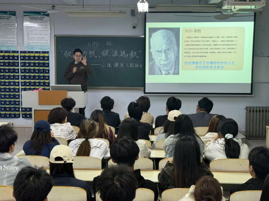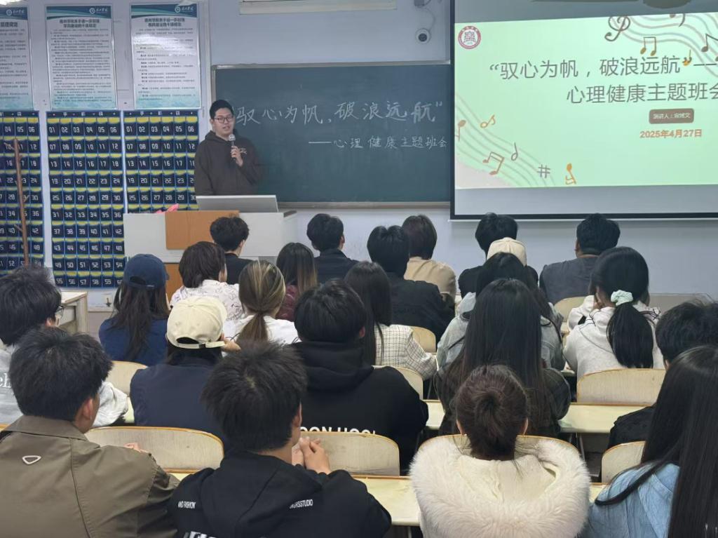 4月27日,伟德国际victor1946举办“驭心为帆,破浪远航”朋辈心理主题班会,由24级音表一班心理委员宣博文主讲,带领同学们走进心理学大家的思想世界,探寻心灵成长的奥秘。