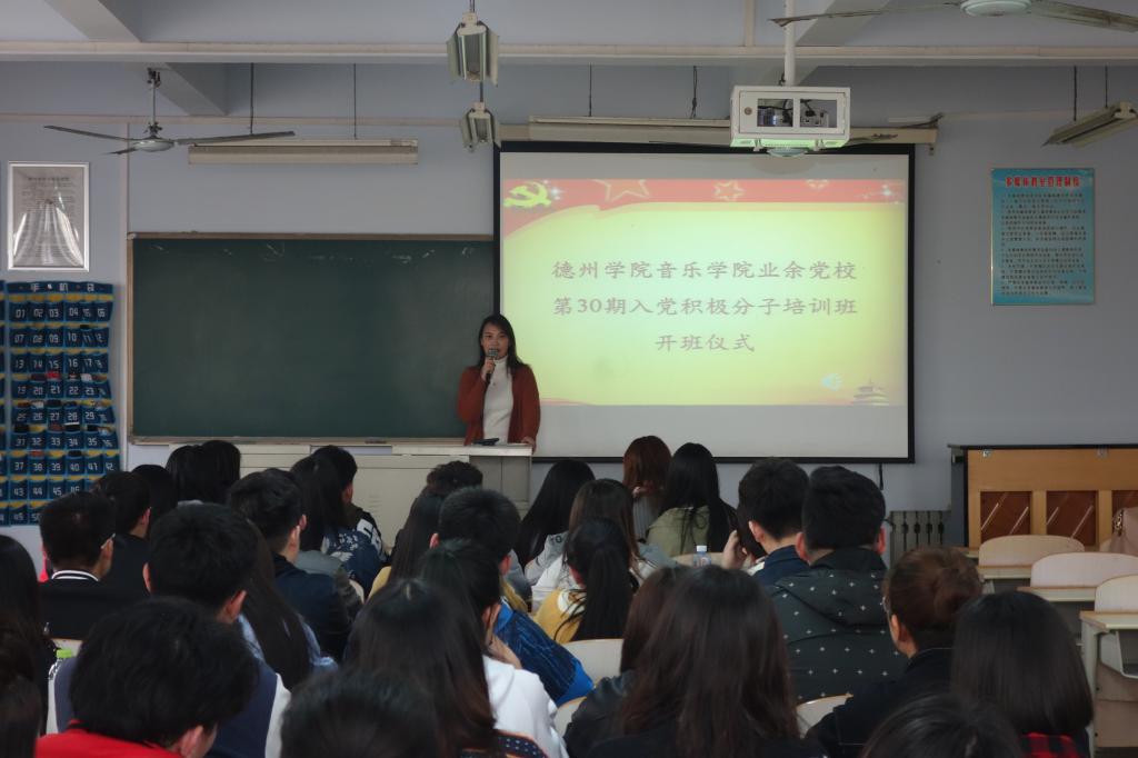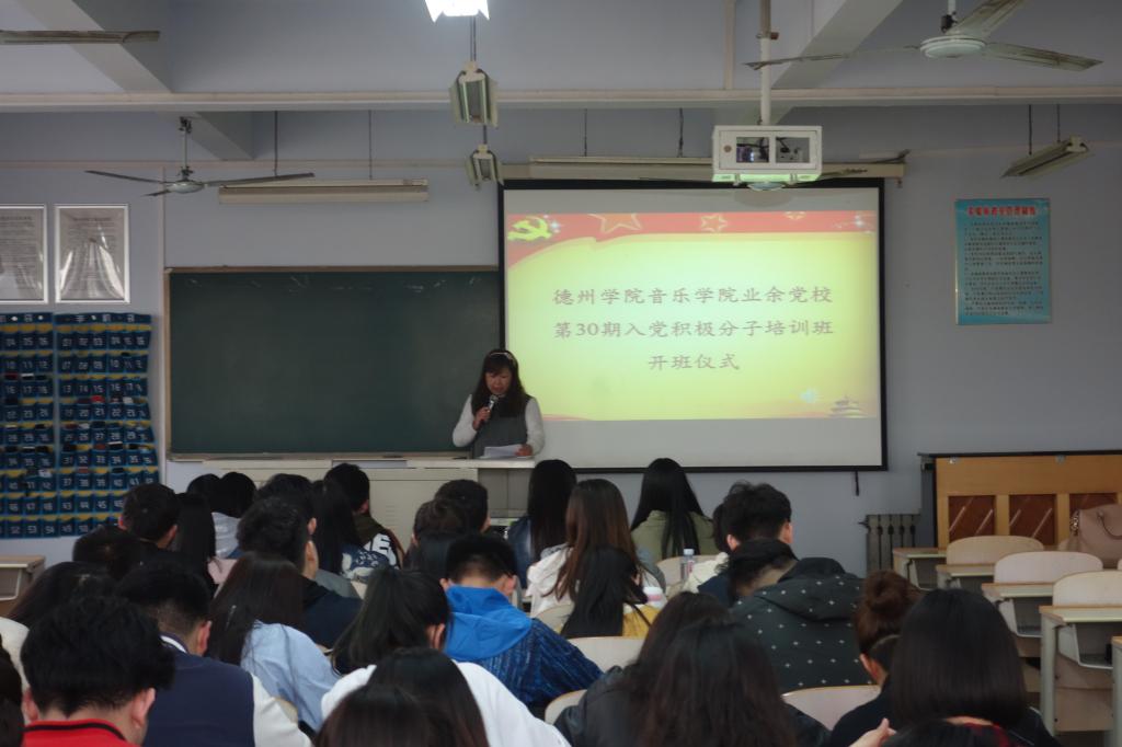 4月10日下午四点,伟德国际victor1946在二楼合堂举办业余党校第30期入党积极分子培训班开班仪式,伟德国际victor1946党总支书记高莉出席,政治辅导员吕萍主持,全院四十余名入党积极分子参加。