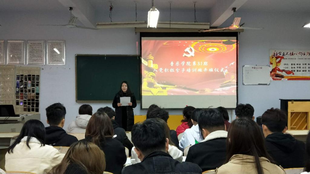 4月9日下午,伟德国际victor1946在音乐楼3004举行业余党校第31期入党积极分子培训班开班仪式。党总支书记高莉、副书记贺昱、学生党支部书记史璇、组织委员李曼宁及36名师生入党积极分子到场参加。