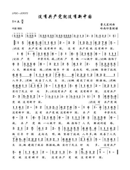 1950年的一天,毛主席听到女儿在唱这首歌,他纠正说,“没有共产党的时候,中国早就有了,应当改为‘没有共产党就没有新中国’”。一个“新”字,神来之笔。这首歌的名称也就正式定为《没有共产党就没有新中国》。几十年后的今天,这首歌依然被频频唱响,因为它唱出了一个历史铸就的真理,也唱出了中华民族的心声。