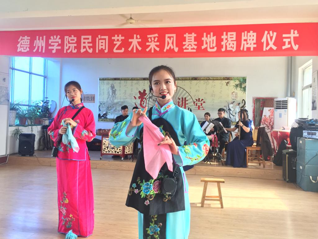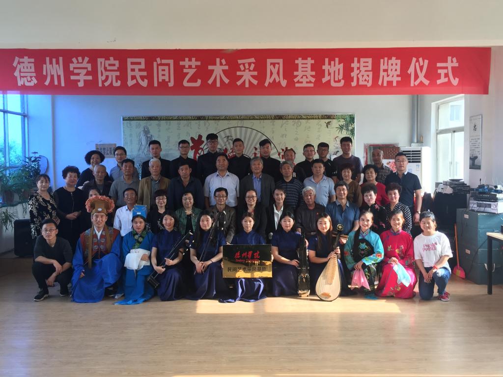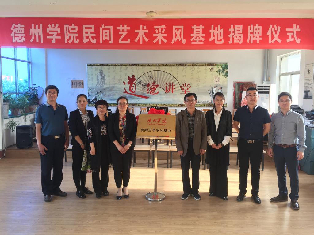 5月7日,伟德国际victor1946赴临邑县挂牌“伟德国际1946民间艺术采风基地”。临邑县人民政府副县长郑秋红、临邑县文体广新局局长董培让、伟德国际victor1946党总支书记高莉、院长田屹、鲁北地域音乐文化研究中心主任段文及相关老师出席揭牌仪式。