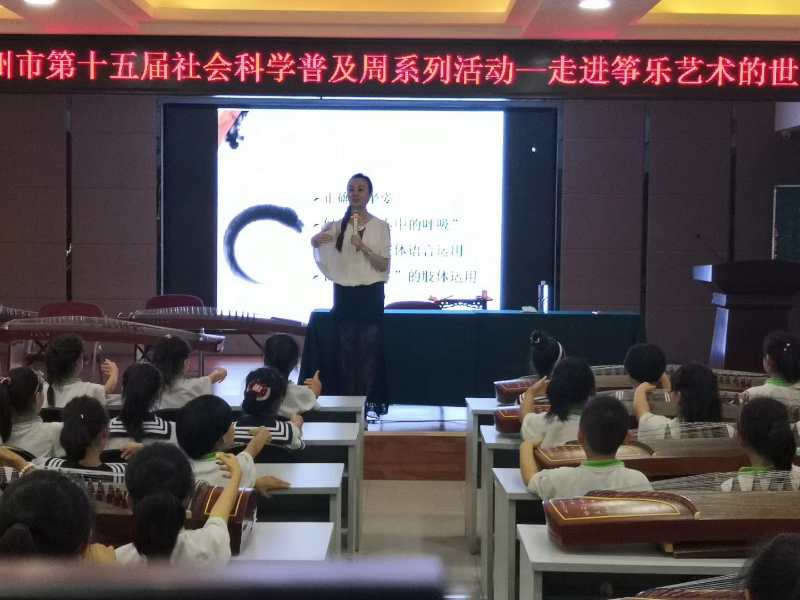 6月19日下午,山东省暨德州市第十五届社会科学普及周系列活动——走进筝乐艺术的世界知识讲座在德州市天衢中心小学举行。