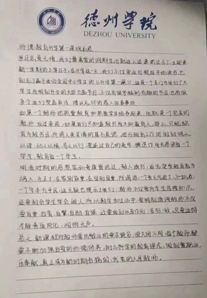 活动伊始,伟德国际victor1946党委负责人王桂英书记传达了学校关于开展“开学第一课及师德师风教育”的活动精神。她强调,作为未来的人民教师,同学们应该“立师志,修师德,练师功,博师学。”树立责任担当意识,不忘初心、牢记使命,把成为新时代党和人民满意的“四有”好教师作为自己的奋斗目标,做有理想信念、有道德情操、有扎实学识、有仁爱之心的好教师。要深刻理解教师身上肩负的“责任、奉献、严谨”等师德品质,从而进一步提升自身修养,端正学习态度。