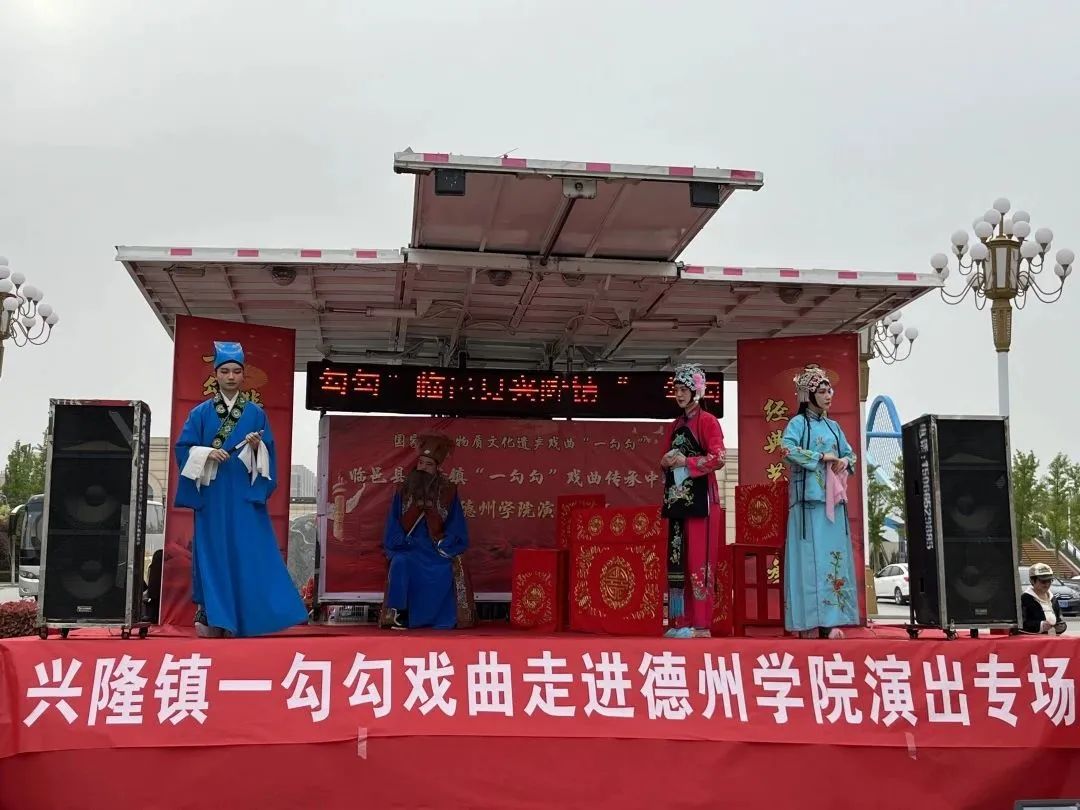 伟德国际victor1946“一勾勾”社团师生、临邑一勾勾传承中心老艺人、兴隆镇中小学学生和艺术中心乐队,分别演出了“一勾勾”经典片段。《王小赶脚》乡土气息浓郁,唱腔酸中带甜,令人陶醉。《祖国的前景好》,歌声嘹亮,充满希望,充分展现了祖国“花朵”的勃勃生机。《彩楼配》,让观众欣赏到原汁原味的一勾勾经典戏剧,令人回味。《姊妹易嫁》,使人仿佛身临其境。艺术中心的《老陈转变记》故事情节充满戏剧,生动的提醒着我们要立足当下,着眼长远,脚踏实地。