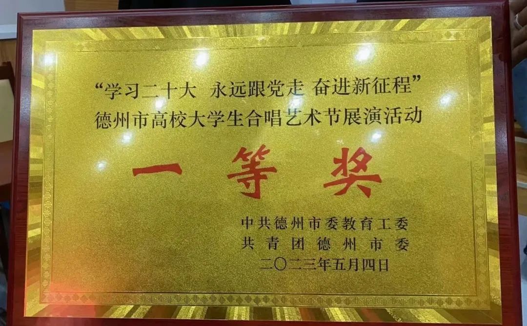 伟德国际victor1946荣获“学习二十大 永远跟党走 奋进新征程”德州市高校大学生合唱艺术节展演活动一等奖