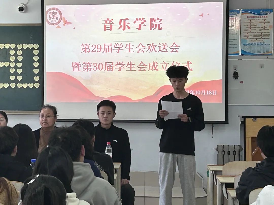 伴随着主持人的开场词,大会正式开始。29届学生会主席王如岩、29届部长代表孙桐依次上台发言并鼓励30届的学生会成员可以珍惜当下,脚踏实地,志存高远。