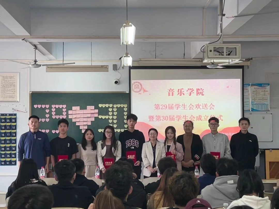 大会进行了颁奖仪式,老师们分别为29届学生会主席团、部长团颁发了证书,并合影留念。