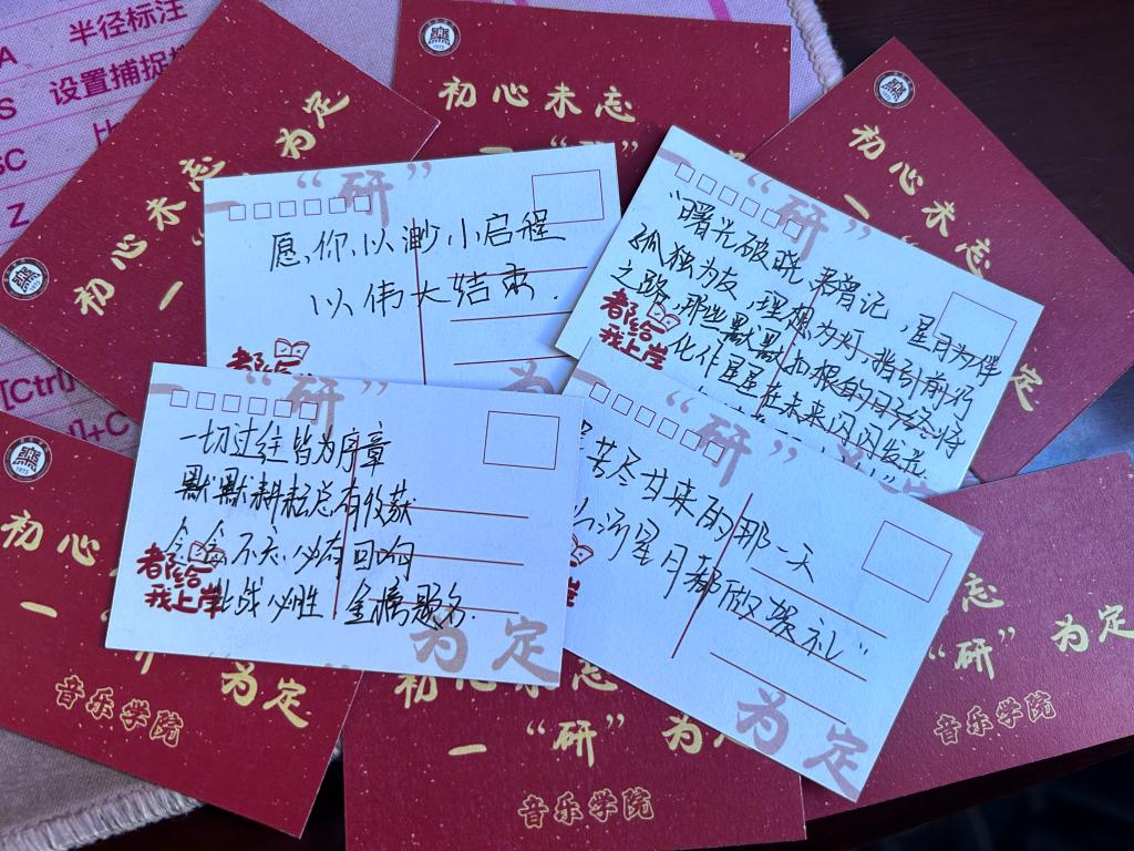 伟德国际victor1946老师和同学们还亲笔为每位考研学子书写祝福贺卡,将心中的祝福寄存于笔端,给予考生真心的祝愿。希望这个贺卡为考研学子带来好运,心想事成,一战成硕。