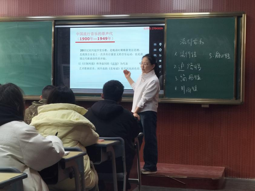 课堂上,授教老师热情洋溢,条理清晰,结合学生的身心发展特点创设学习情境,开展形式多样、内容丰富的课堂教学内容,同学们精神饱满,教学秩序井然。中国流行音乐历经百年的发展历程,从学堂乐歌到民间小调,从港台到内地,再到多元化与国际接轨,这是一段充满激情与活力的历史,优秀的音乐作品是值得我们回味和传承的宝贵文化遗产。校领导与同学们一起听课做笔记,师生共同在新学期伊始展现出了良好的精神风貌和饱满的工作、学习热情。