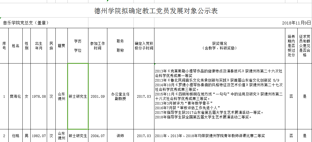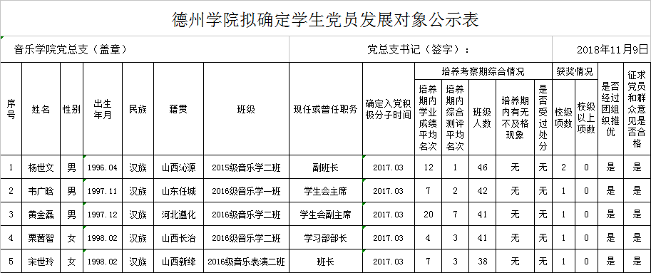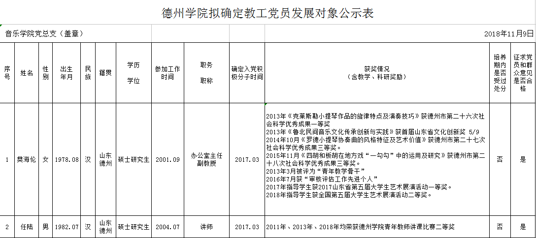 经党组织培养考察,征求党员、群众和培养联系人意见,支委会讨论研究、党总支审查,拟确定樊海伦、任陆、杨世文等7人为党员发展对象。为增强发展党员工作的透明度,接受党内外群众的监督,确保发展党员的质量,根据上级文件精神和《中共伟德国际1946委员会发展党员工作实施细则》的要求,现将拟确定发展对象的基本情况公示如下(名单附后):