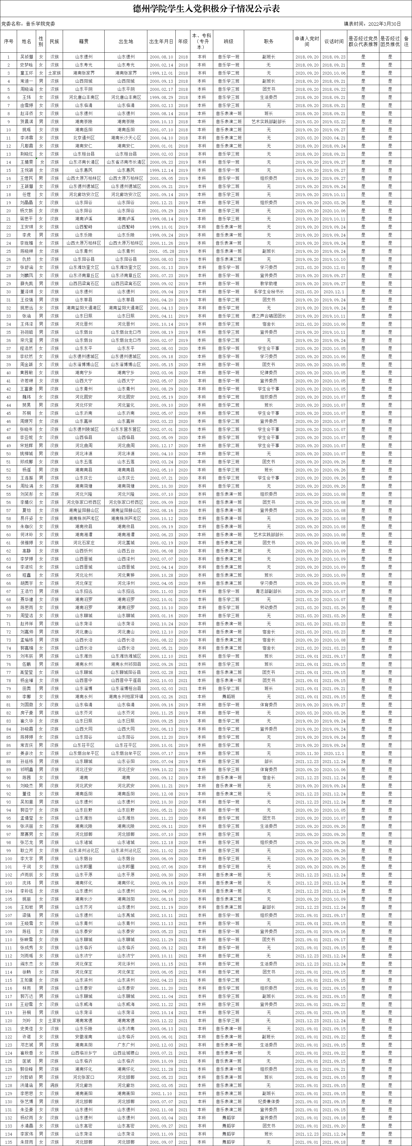 经党组织培养考察,通过党员、群众代表无记名投票推荐和团员推优,支委会讨论研究、党委审查,确定吴祯慧等139人为入党积极分子。为增强发展党员工作的透明度,接受党内外群众的监督,确保党员后备队伍的质量,根据上级文件精神和《中共伟德国际1946委员会发展党员工作实施细则》的要求,现将新确定入党积极分子的基本情况公示如下(详见附表):