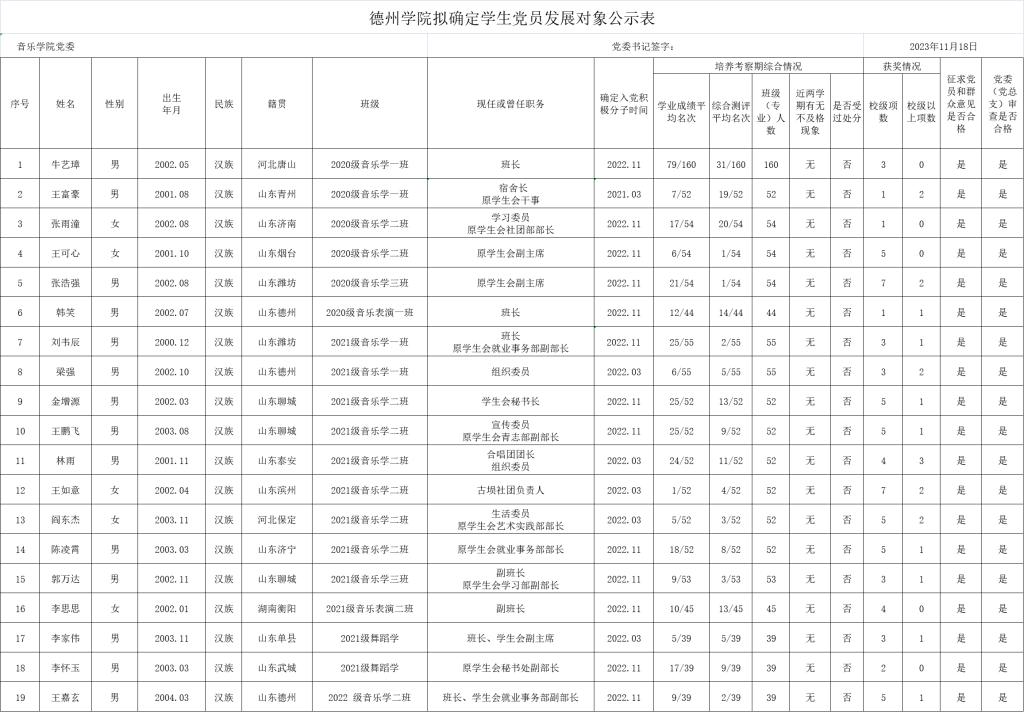 经党组织培养考察,征求党员、群众和培养联系人意见,支委会讨论研究、党委审查,拟确定丁玥、牛艺璋、王富豪等20人为党员发展对象。为增强发展党员工作的透明度,接受党内外群众的监督,确保发展党员的质量,根据上级文件精神和《中共伟德国际1946委员会发展党员工作实施细则》的要求,现将拟确定发展对象的基本情况公示如下(名单附后):