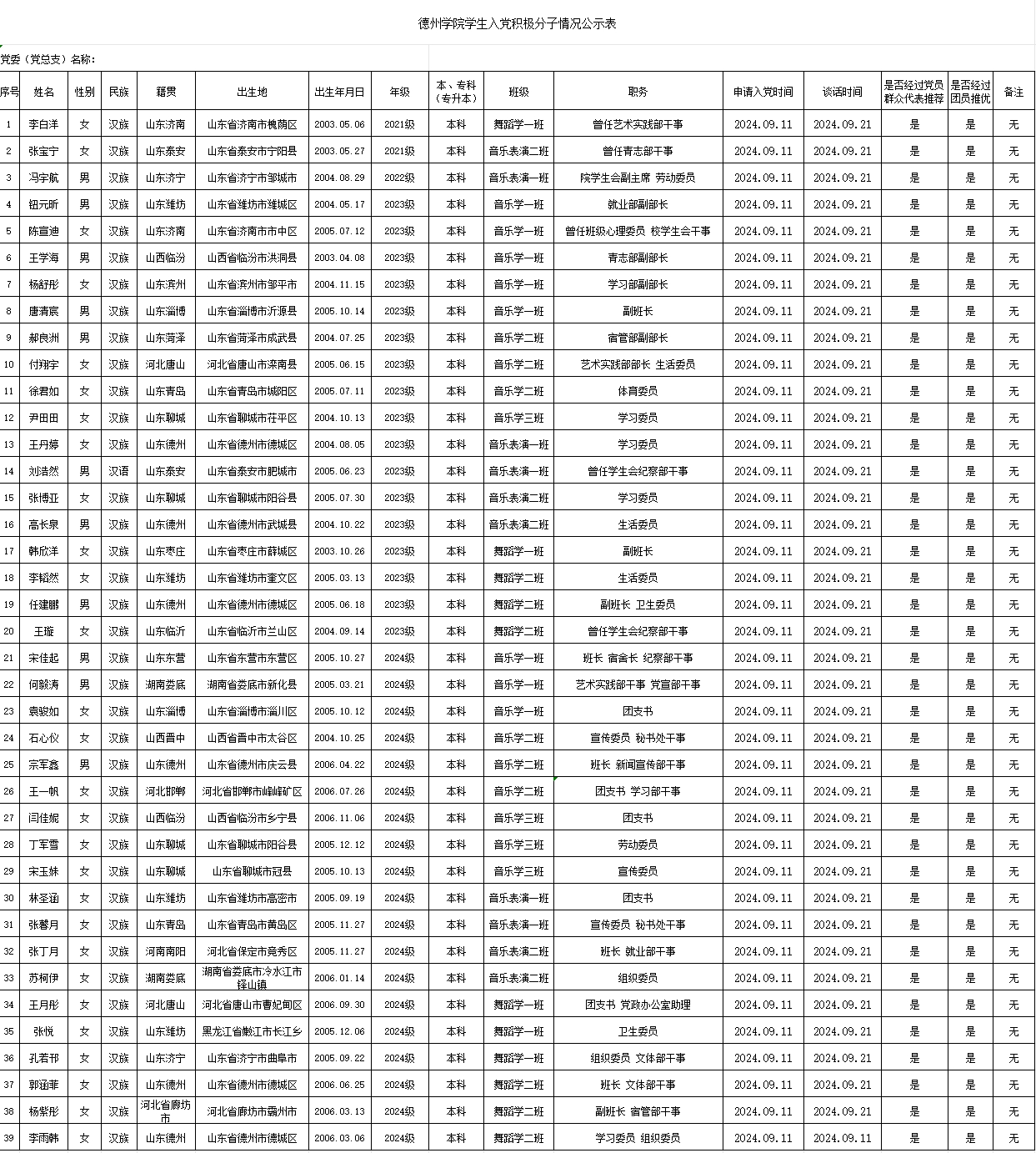 经党组织培养考察,通过党员、群众代表无记名投票推荐和团员推优,支委会讨论研究、党委审查,确定李白洋等39人为入党积极分子。为增强发展党员工作的透明度,接受党内外群众的监督,确保党员后备队伍的质量,根据上级文件精神和《中共伟德国际1946委员会发展党员工作实施细则》的要求,现将新确定入党积极分子的基本情况公示如下(详见附表):
