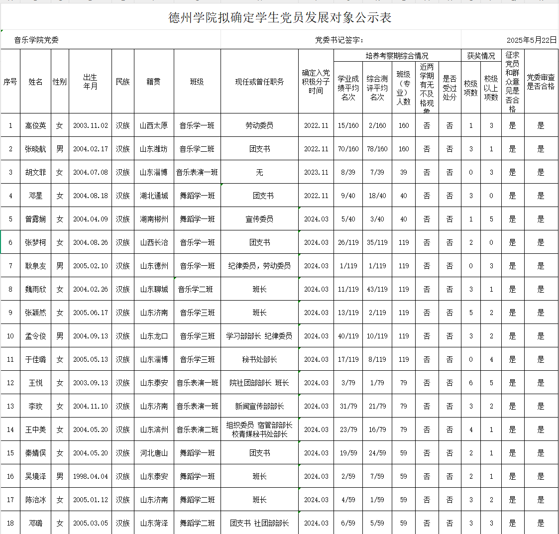 经党组织培养考察,征求党员、群众和培养联系人意见,支委会讨论研究、党委审查,拟确定高俊英等18人为党员发展对象。为增强发展党员工作的透明度,接受党内外群众的监督,确保发展党员的质量,根据上级文件精神和《中共伟德国际1946委员会发展党员工作实施细则》的要求,现将拟确定发展对象的基本情况公示如下(名单附后):