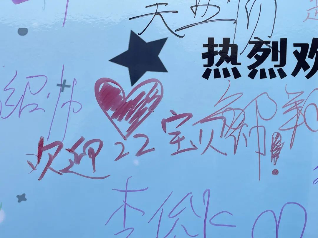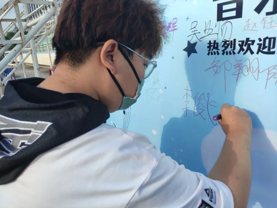 新生同学们,在伟德国际victor1946海报板上,也留下了他们的第一次签名。