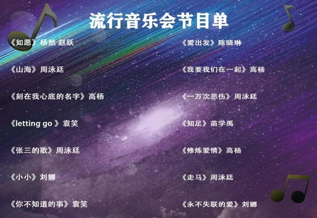 活动伊始,苗学禹、高杨等同学现场分享音乐作品和音乐故事。对于优秀流行歌曲的判断方式,从旋律的艺术性、歌词的文学性、旋律与歌词的结合、演唱者(编曲者)对歌曲的诠释等几个方面进行了交流。他们呼吁喜爱流行音乐的同学们,大胆挖掘与创新关于民族音乐的东西,创作和演唱出拥有我们民族风格的流行音乐。