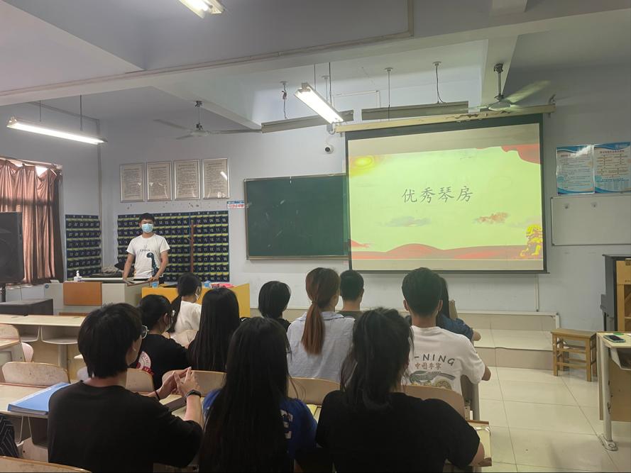 活动开始,主持人向同学们介绍了琴房的管理制度。为让同学们更好的保持琴房卫生,活动第二项中,评选出三个优秀琴房,并为优秀琴房长颁发流动红旗。