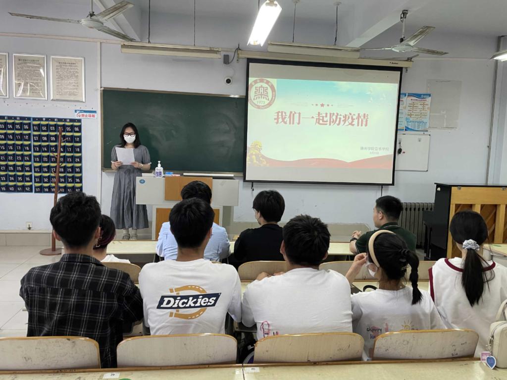 然后带领大家学习防疫小知识,增强自身免疫力,同时鼓励学生利用课余时间积极参与疫情防控工作,增强校园主人翁意识。