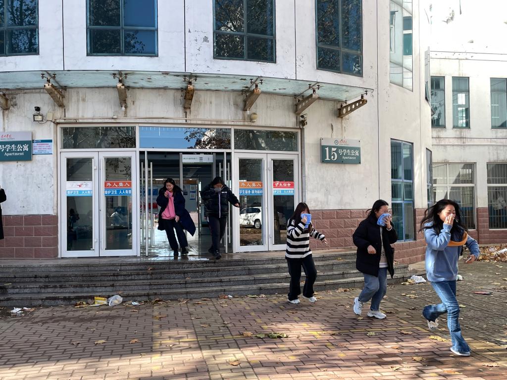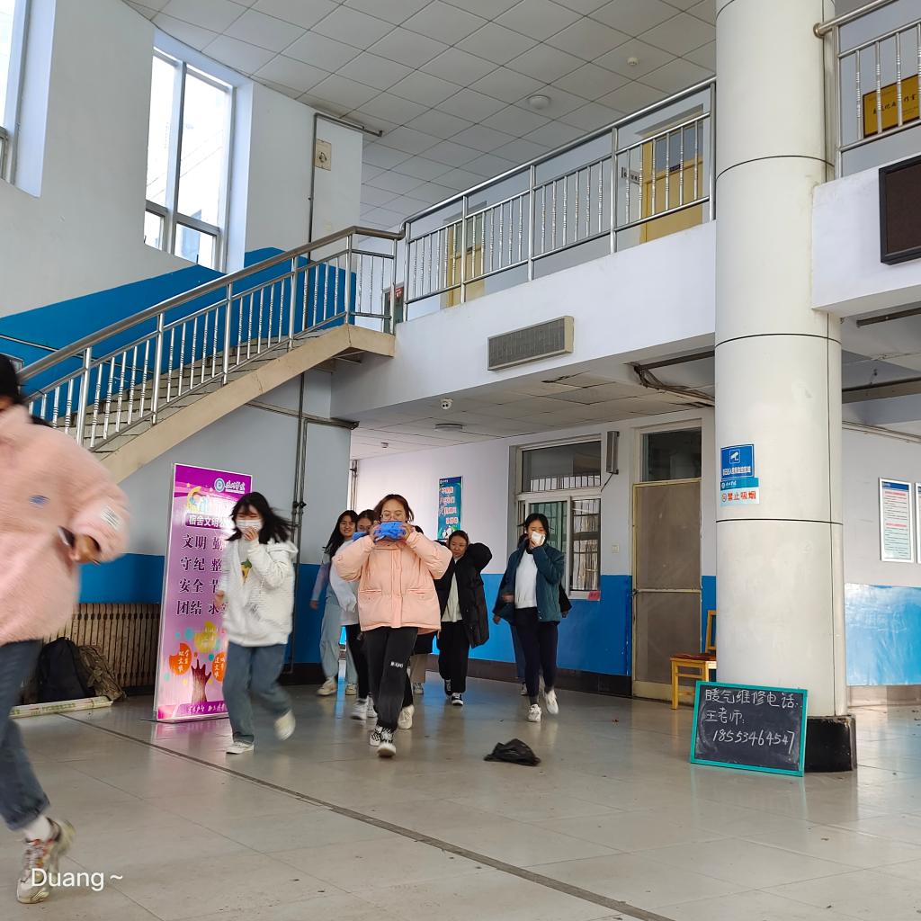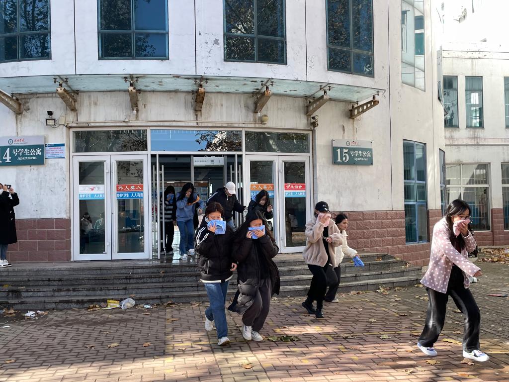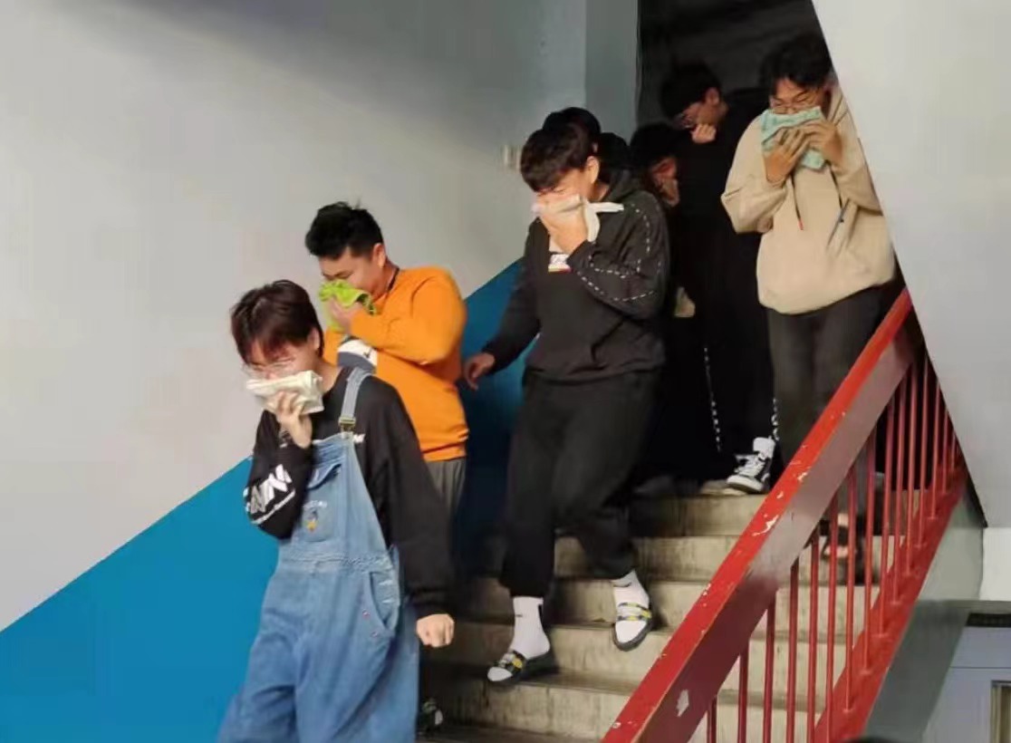 11月9日中午,伟德国际victor1946组织学生分别在公寓6号楼、14号楼、15号楼开展消防演练。在演练过程中,随着报警信号发出,学生们用湿毛巾捂住口鼻,有序撤离,不拥挤,不喧哗,以最短的时间完成了撤离,并在宿舍楼前进行集合。演练结束后,辅导员为同学们普及了消防安全知识。参演学生纷纷表示,通过这次活动,提高了自己对火灾危害性的认识,同时增强了自我保护意识。