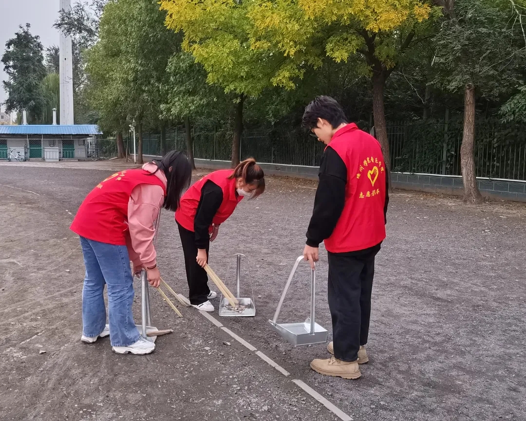 远远的望去,一群群穿着红色志愿马甲的志愿者们拿着劳动工具,认真地打扫、清理校园的每一个角落,以身作则,做文明的践行者。