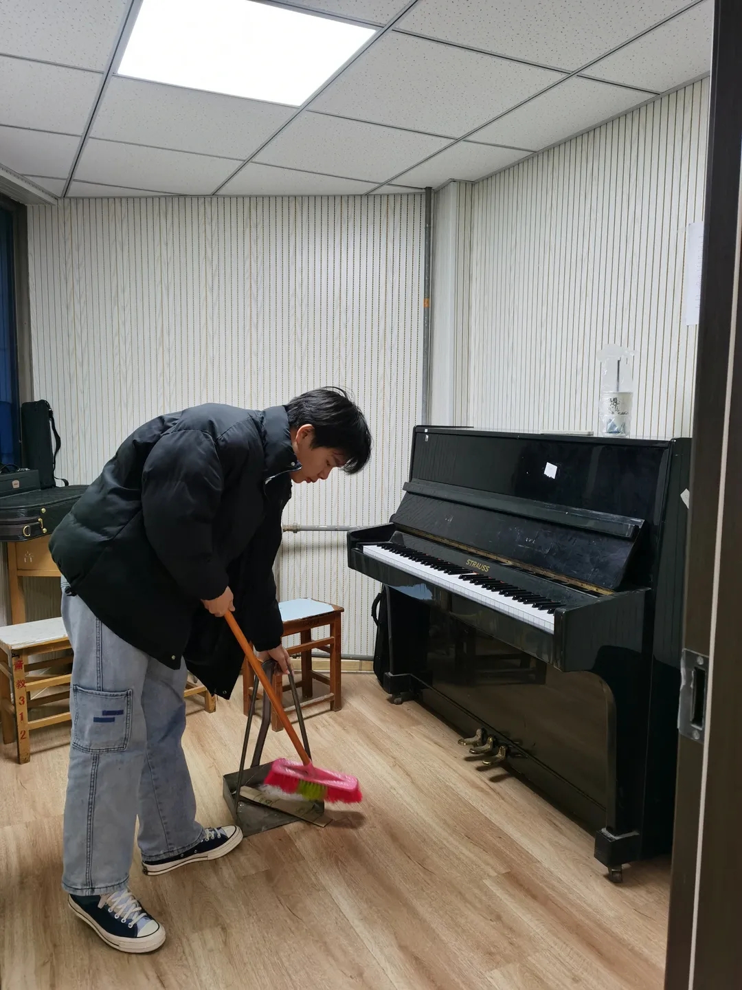 音院学子们对琴房卫生进行了清扫,学生们互相配合,利用手中的清洁工具,铲除积存垃圾,努力清除各卫生死角。同时,按照创城工作要求,切实担负起责任,积极引导同学们养成良好的卫生习惯,力求创城活动人人知晓、踊跃参与。